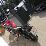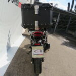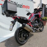 Con paramotori alti e bassi neri e top case alluminio nero.
