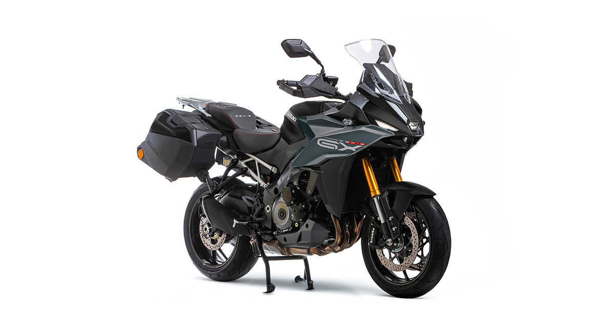 La GSX-S1000GX Touring è dotata di valigie laterali, manopole riscaldate, sella comfort con logo e cavalletto centrale di serie, offrendoti tutto il comfort di cui hai bisogno per affrontare i viaggi più lunghi in qualsiasi condizione.